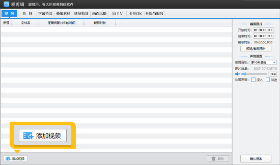 启动爱剪辑软件后,直接点击“添加视频”按钮,轻松将待翻转的视频文件载入编辑界面。