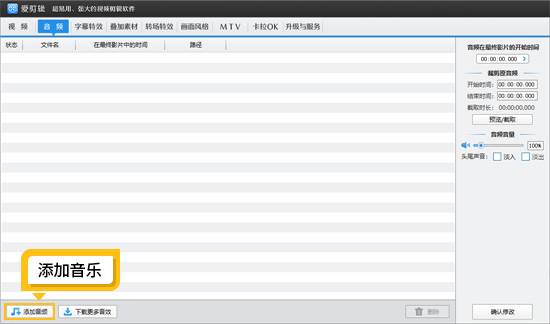 在“音频”面板中,爱剪辑提供了海量的音乐素材库,涵盖各种主题风格,用户可以轻松导入合适的音乐,为视频增添氛围和情感。