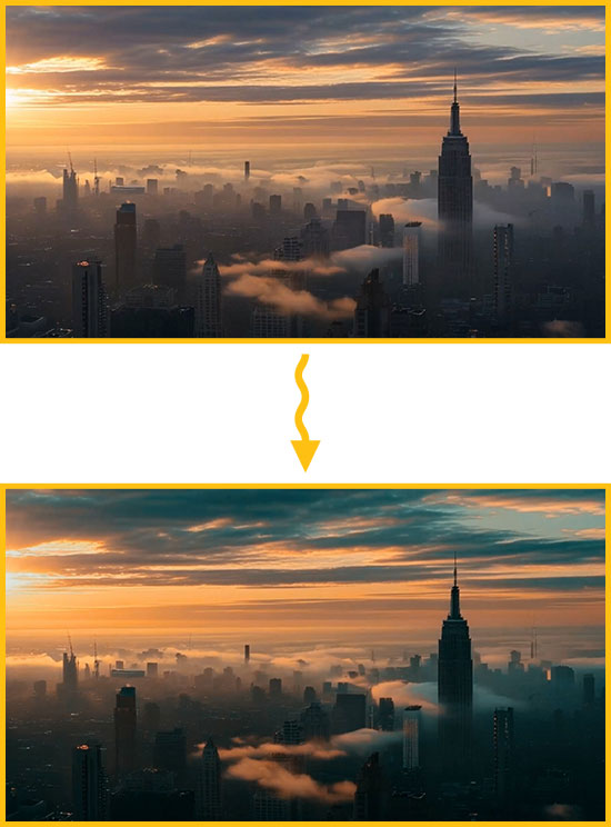 图2:灰片变成专业电影调色效果