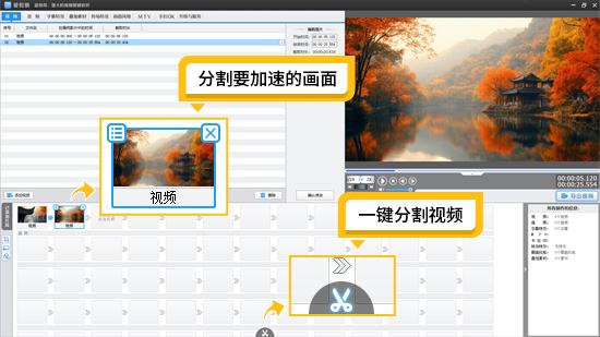 例如,你的视频是一段旅游记录,你想让其中走路前往景点的部分快进,就可以通过“超级剪刀手”分割出这部分片段。
