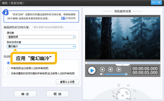 自动还原Log模式和HDR视频色彩:采用先进的AI技术,能够自动对log灰片和HDR视频自动匹配对应拍摄设备的标准调色方案,进行高质量色彩还原,即使是调色新手也能轻松获得专业效果。
